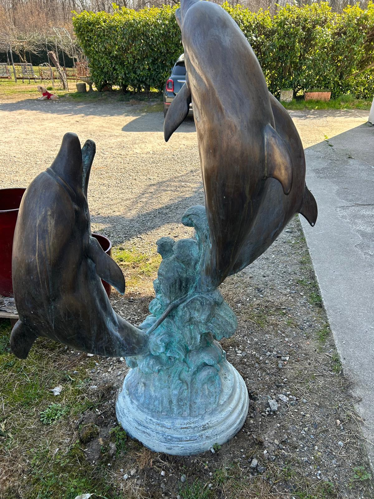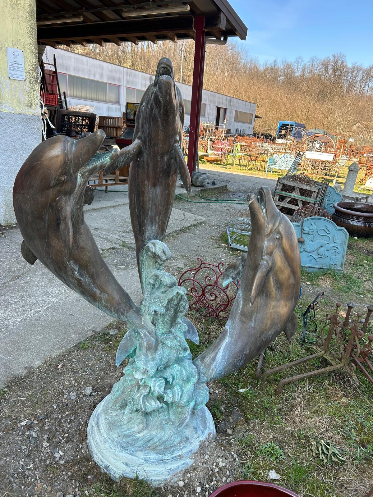 fontana in bronzo con delfini con fuoriuscita acqua