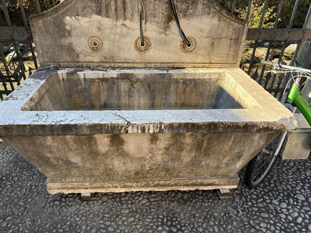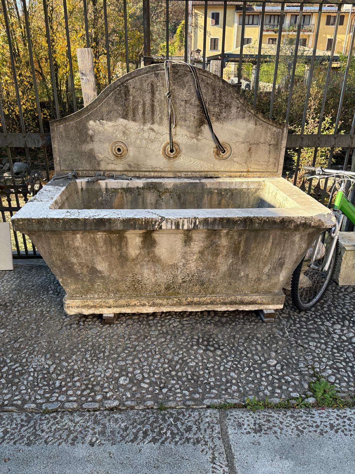 Antica vasca rettangolare in pietra con pannello,provenienza Brescia